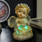 Сувенир полистоун свет "Ангел в цветочном венке и резном платье и голубь" 11,8х8,5х7,2см