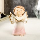 Сувенир керамика "Ангел-малыш в перламутро-розовом платье с книгой" 9,7х6х6,7 см