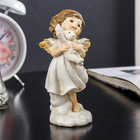 Сувенир полистоун "Ангелочек в белом платье с золотым воротником с сердцем" 14,5х6,5х7 см