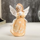 Сувенир керамика "Ангел-девочка в персиковом платье с накидкой, с цветком" 12,4х6х7,7 см