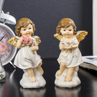Сувенир полистоун "Ангел-девочка с двумя шишечками, с букетом/сердцем" МИКС 15х5,8х5,,4 см