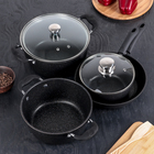 ![]() Набор посуды "Злата", 4 предмета: кастрюли 3,6/6,1 л, ковш 1,9 л, сотейник с антипригарным покрытием 24х6,5 см, капсульное дно