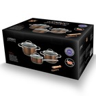 ![]() Набор посуды "Софи", 5 предметов: кастрюли 3,6/6,1 л,ковш 1,9 л,чайник 2,5 л,сотейник 2,9 л, антипригарное покрытие, стеклянные крышки