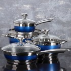 ![]() Набор посуды "Блу", 4 предмета: кастрюли 5,1/3,2 л, ковш 1,6 л, сотейник с антипригарным покрытием 3,4 л