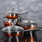 Наборы посудыНабор посуды 7 предметов «Кофейная кантата»: 2,5 л, 3,35 л, 4,5 л, со стеклянными крышками, с ковшом 1,3 л