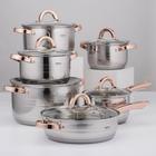 Наборы посудыНабор посуды "Злата 3", 6 предметов: кастрюли 1,9/2,5/3,4/5,8 л, ковш 1,9 л, сотейник 24х6,5 см, антипригарное покрытие, капсульное дно