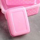 ![]() Набор пищевых контейнеров с крышками "Горошек", 3 шт: 16х12 см (350 мл), 12х9 см (200 мл), 19х14 см (600 мл), цвет МИКС