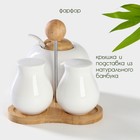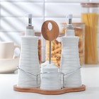![]() Набор для специй "Эстет", 3 предметы: солонка, перечница, сахарница с ложкой, на деревянной подставке