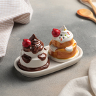 Наборы для специйНабор для специй 100 мл "Печеньки", 2 шт: солонка, перечница, на керамической подстаке, рисунок МИКС