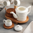 Посуда для напитковНабор чайный "Эстет", 13 предметов, чайник 0,67 л, 6 чашек 90 мл, 6 подставок, на деревянной подставке