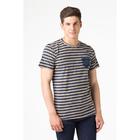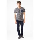 Футболка мужская, круглый вырез, карман, размер 50, полоска, цвет синий