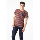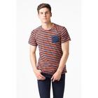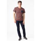 Футболка мужская, круглый вырез, карман, размер 50, полоска, цвет кирпичный