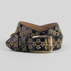 Ремень женский, цветы, перфорация, ширина - 3 см, пряжка золото, цвет синий