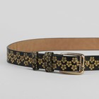 Ремень женский, цветы, перфорация, ширина - 3 см, пряжка золото, цвет чёрный