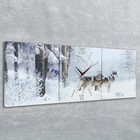Часы настенные, серия: Животный мир, модульные "Волки в зимнем лесу", 35х110 см, микс
