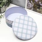 Шкатулка металл круг "Голубая клетка" 9х19,8х19,8 см