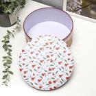 Шкатулка металл круг "Мелкие красные цветочки" 9х19,8х19,8 см