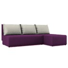 Угловой диван «Алиса», бельевой ящик, еврокнижка, ткань рогожка, цвет савана виолет/ милк
