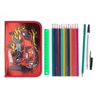 КаркасныеПенал с наполнением 1 секция 145x190 мм Mattel Hot Wheels, 17 предметов, эффект металлик, 3D объёмный рисунок