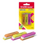 ЛастикиНабор ластиков 3 штуки Erich Krause Drive, 57 х 15 х 13 мм, мягкие, гипоаллергенные, прямоугольные, в блистере