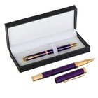 Ручка подарочная, перьевая, в кожзам футляре, корпус фиолетовый