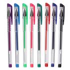 Набор гелевых ручек, 8 цветов, металлик, с блёстками, с резиновым держателем, в блистере на кнопке