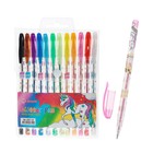 Набор гелевых ручек, 12 цветов, металлик, корпус с рисунком, «Единорог», в блистере на кнопке