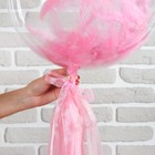 Шар полимерный 18" "Прозрачный с бумажным хвостиком" перья, цвет розовый, 1 шт