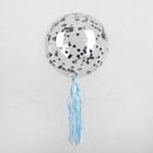 Шар полимерный 20" "Сфера", круги, конфетти, с бумажным голубым хвостиком, цвет серебро