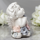 Сувенир полистоун "Ангел в ободке с серебристой звездой на цветочном шаре" МИКС 12,5х6х6см