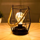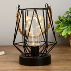 Лампа настольная лофт + подвес "Фонарь и светлячки" чёрная от батареек 3ААА 35х13,5х13,5см