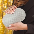 Клатч женский, отдел на фермуаре, длинная цепь, цвет серый