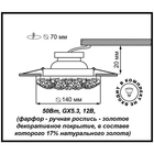 Встраиваемый светильник Novotech, 50 Вт, GX5,3, 12 В, 70x70 мм, d=70 мм, цвет золото