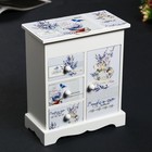 Шкатулка дерево комод 3 ящика+дверка "Синяя птица и лаванда" 19х16х8 см