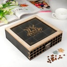 Шкатулка дерево, металл, стекло с делениями "Время для кофе" чёрная 7,5х24х24 см