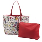 Сумка- шоппер, цвет красный, принт- цветы, 11 х 45 х 32 см