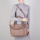 Сумка женская, отдел на молнии, 4 наружных кармана, длинный ремень, цвет пудра