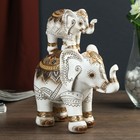 Сувенир "Слон с цветной попоной и слонёнком" белый с золотом, стразы 16х17,5х9 см