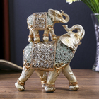 Сувенир полистоун "Слон и слонёнок в ажурной попоне с зеркальными вставками" 21,5х14х7,5 см