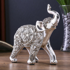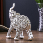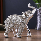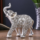 Сувенир полистоун "Серебряный слон с ажурным цветочным рисунком" 14,5х6х16 см