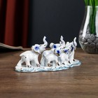 Сувенир керамика "Пять слонов на полянке" бело-синие с золотом 9х18х6,5 см