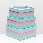 Набор коробок 3 в 1 с окном, голубой, 25 х 25 х 12 - 20 х 20 х 10 см