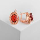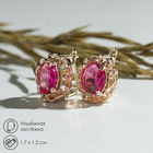 Серьги со стразами "Овал ажурный", цвет красный в золоте