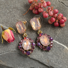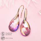 Серьги со стразами "Ромб" капля, цвет розово-фиолетовый в золоте