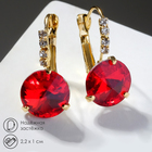 Серьги со стразами "Кристалл" яркий, цвет красный в золоте