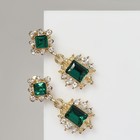 Серьги со стразами "Ажур" дуэт, цвет изумрудный в золоте