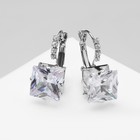 Серьги "Циркония" мини, квадрат, цвет белый в серебре