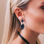 Серьги со стразами "Капля" шик, цвет синий в чернёном серебре