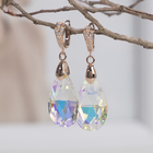 Серьги с кристаллами "Иллюзион" капля, цвет бело-радужный в золоте