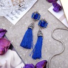 Серьги ассорти "Кисти" прямоугольник, цвет ярко-синий в чернёном серебре